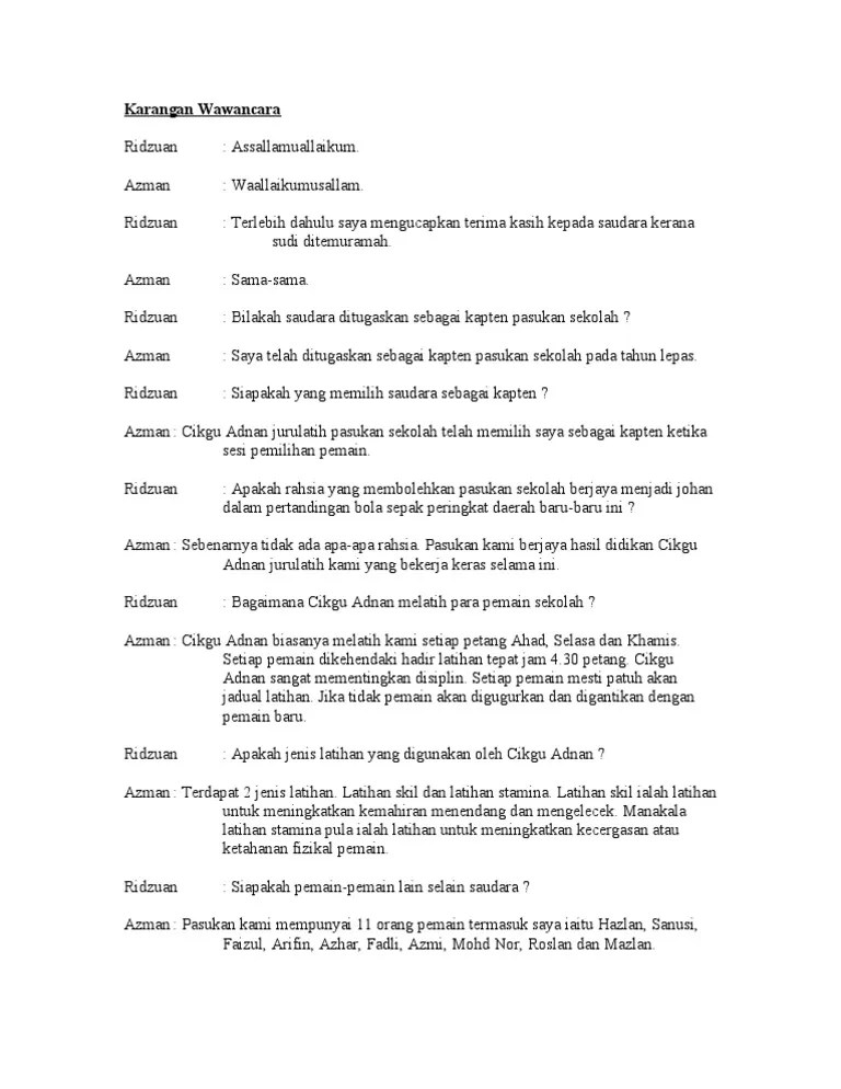 Contoh Karangan Dialog Bahasa Melayu / Doc Contoh Karangan Wawancara Mira Isya Academia Edu. Profil singkat nabi muhammad saw; Apr 25, 2022 · contoh karangan bahasa melayu spm yang bagus adalah di mana di bahagian penutup memberikan cadangan dan syor baik untuk setiap masalah dan syor yang timbul. Penggunaan tanda petik dan tanda petik tunggal yang benar ditentukan berdasarkan peraturan menteri pendidikan republik indonesia no.46 tahun 2009. Saya minta izin untuk menggunakan dialog ini.terima kasih cikgu n minta halalkan ilmu yerr.